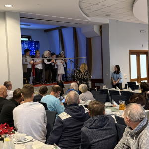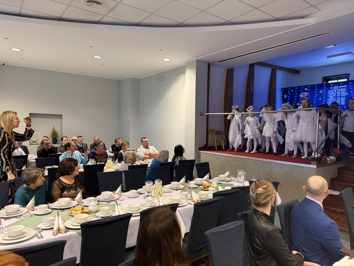 Ośrodek Portus, otoczony zimowym krajobrazem, stworzył idealne tło dla wigilijnego spotkania. Uczestników powitał pięknie przygotowany, bogato zastawiony stół, na którym nie zabrakło tradycyjnych potraw świątecznych. Wspólne dzielenie się posiłkiem sprzyjało rozmowom, wymianie doświadczeń i budowaniu poczucia wspólnoty. Jednym z najważniejszych momentów wydarzenia było kolędowanie, które szybko połączyło wszystkie pokolenia. Znane melodie i świąteczne teksty wprowadziły atmosferę radości i wzruszenia. Nie zabrakło również jasełek, przygotowanych z dużym zaangażowaniem przez dzieci z Przedszkola Bajka w Lubaszu, które przypomniały o duchowym wymiarze świąt Bożego Narodzenia.